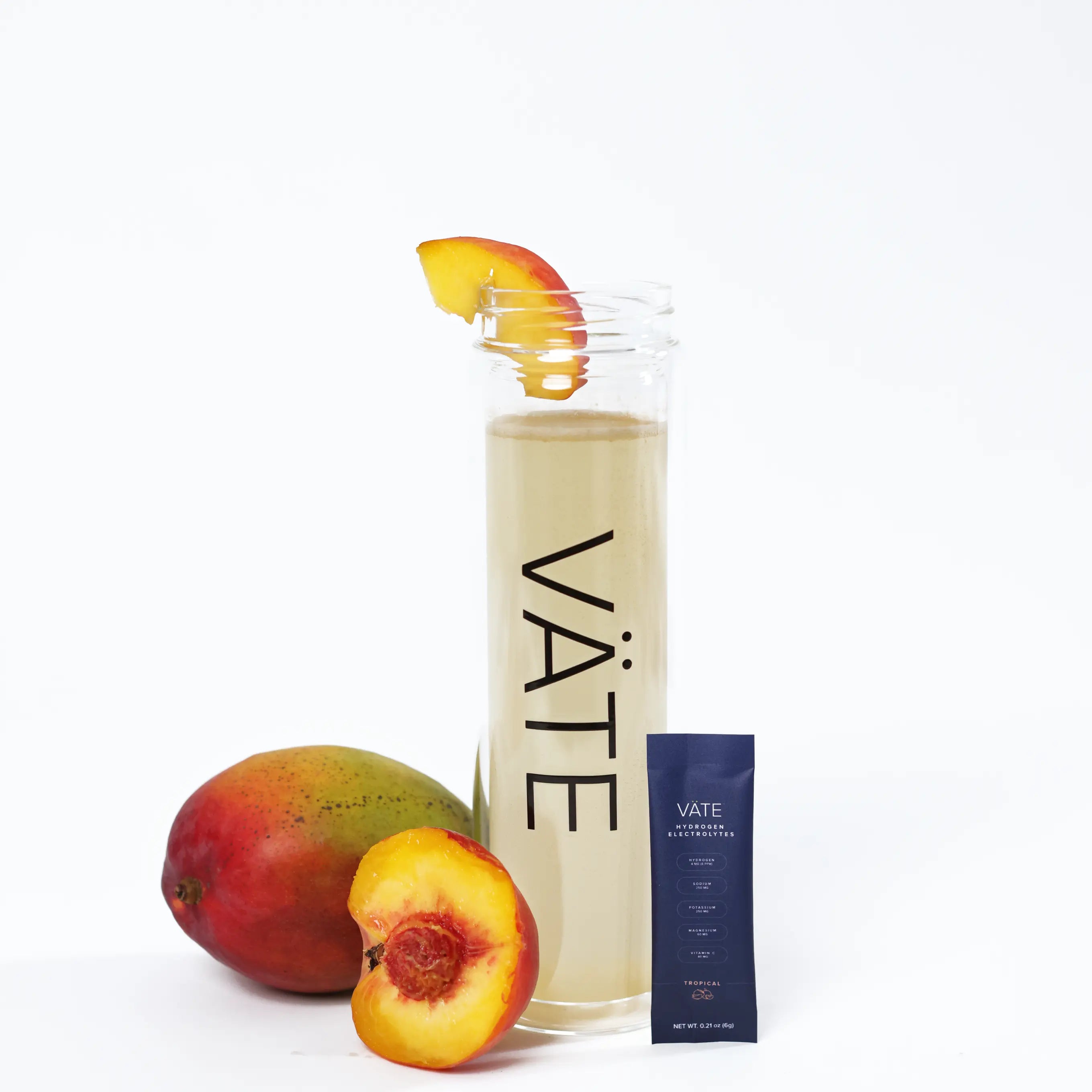 Light, clean, and fruit-infused, not salty, syrupy like typical hydration powders. VÄTE™ comes in craveable flavors like Lemonade, Wild Berry, and Tropical (peach-mango). No sugar, no aftertaste, no artificial junk.